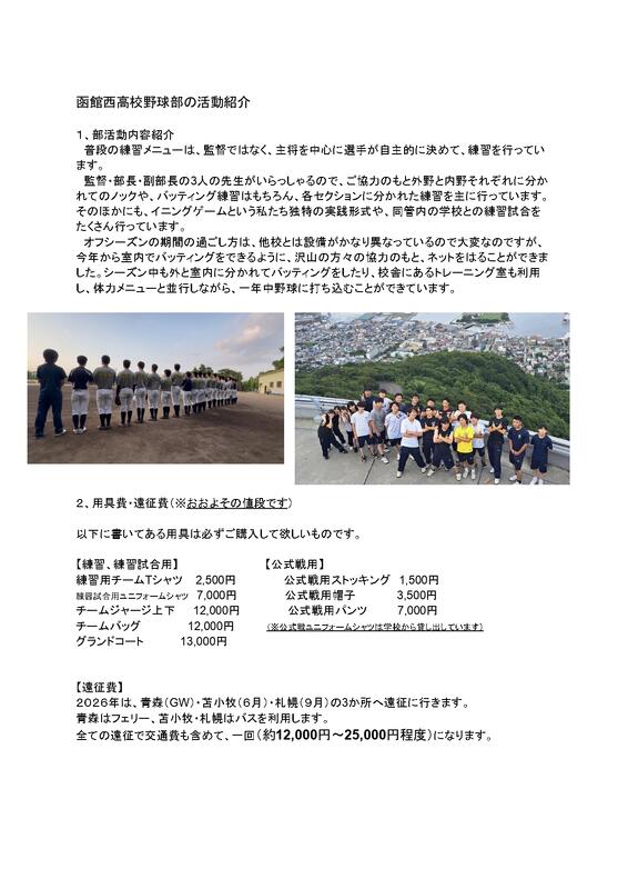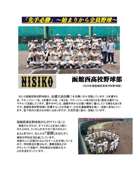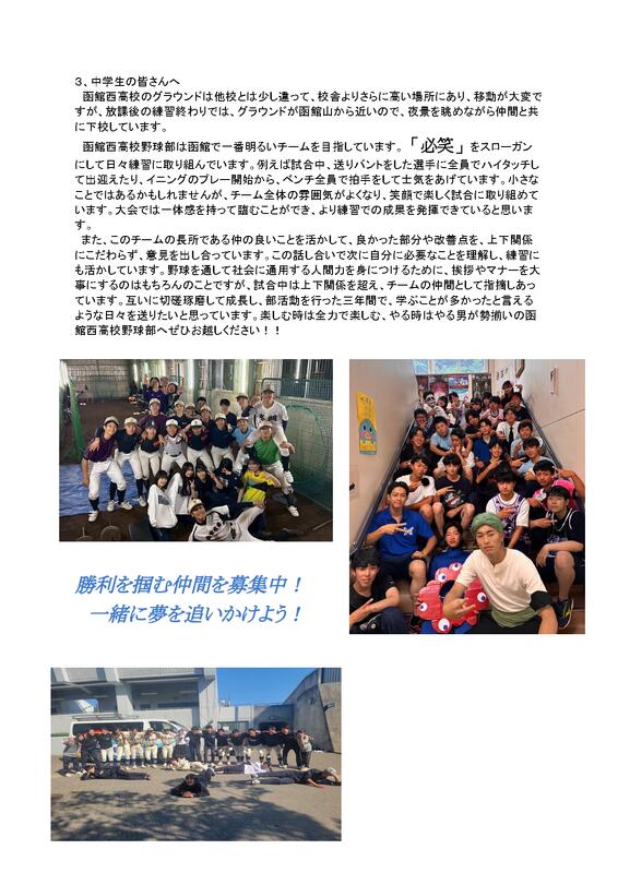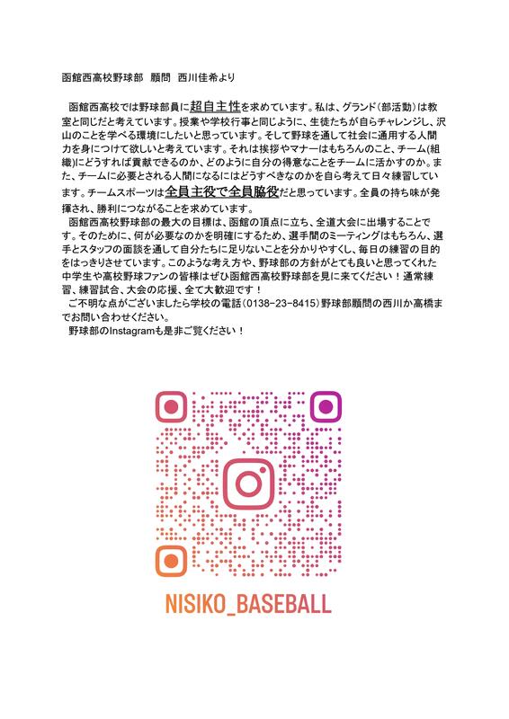 函館西高野球部らしく楽しく活動していきますので、応援よろしくお願いします。