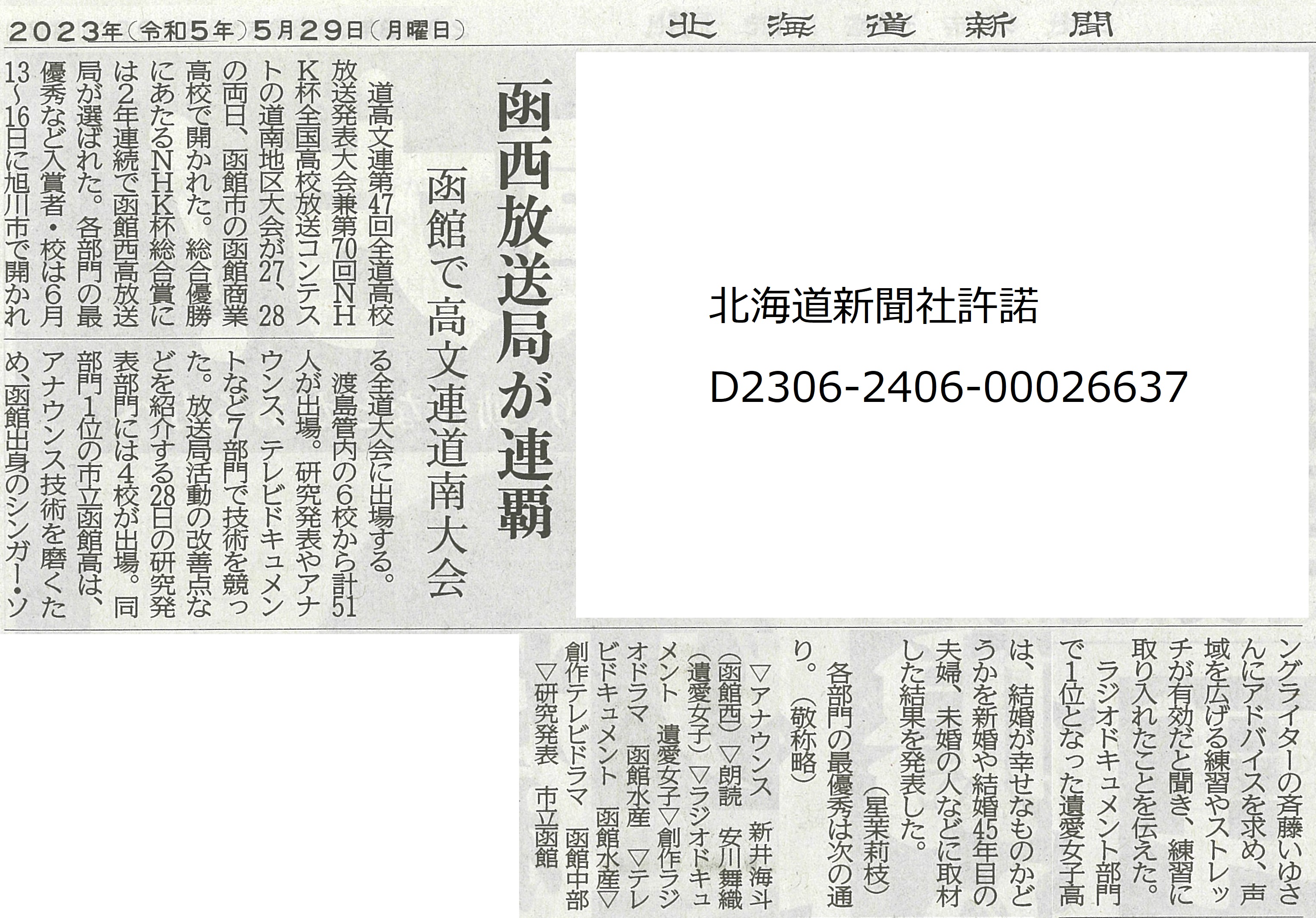 20230623北海道新聞夕刊(書道部).jpg